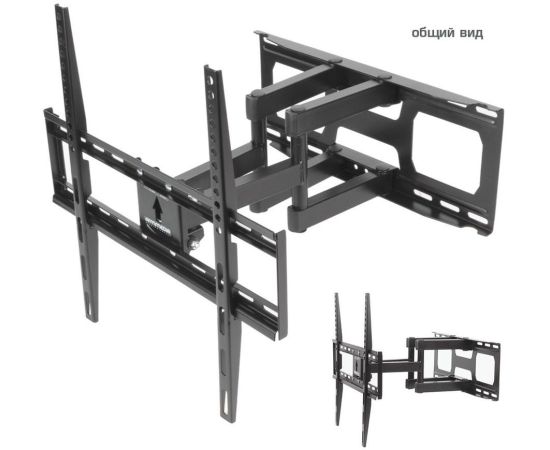 Особенности: Усиленная стальная конструкция, Универсальный-телевизор на кронштейне можно наклонить, повернуть и сдвинуть к стене, Широкая монтажная пластина обеспечивает надежное крепление ТВ на стену, Легкий монтаж телевизора, Корректировка экрана ±5°