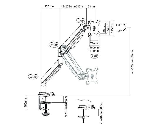 Угол наклона: -90/+90 °
