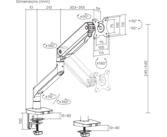 Кронштейн для мониторов Ultramounts UM 730 черный 17"-45" макс.16кг крепление к столешнице поворот и наклон