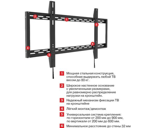 Особенности Универсальная система крепления: по горизонтали от 200 мм до 900 мм, по вертикали от 200 мм до 600 мм.