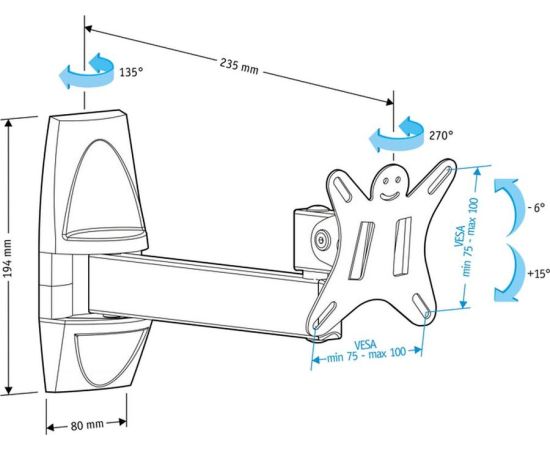 Поддержка крепления VESA 75×75, 100×100