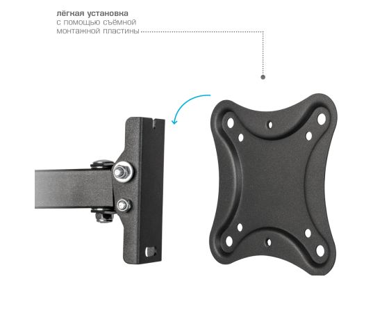 Универсальная система крепления, Легкий монтаж при помощи съемной монтажной пластины, Вращение экрана уникальная возможность вращения экрана на ±5° относительно стены, Надежная стальная конструкция максимальная нагрузка до 25 кг