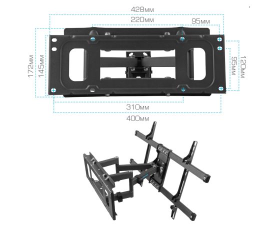 Надежная стальная конструкция максимальная нагрузка до 55 кг, Универсальная система крепления, Легкий монтаж при помощи съемной монтажной пластины, Вращение экрана уникальная возможность вращения экрана на ±5° относительно стены, Кабель-канал
