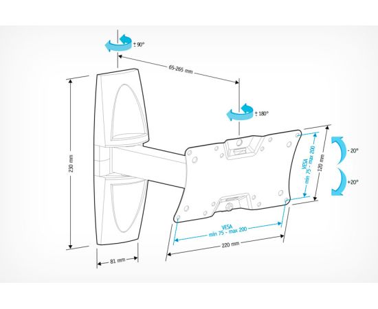 Максимальное расстояние от стены, в мм: 265