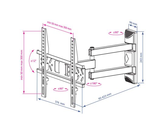 Регулировка: поворотно-выдвижной и наклонный