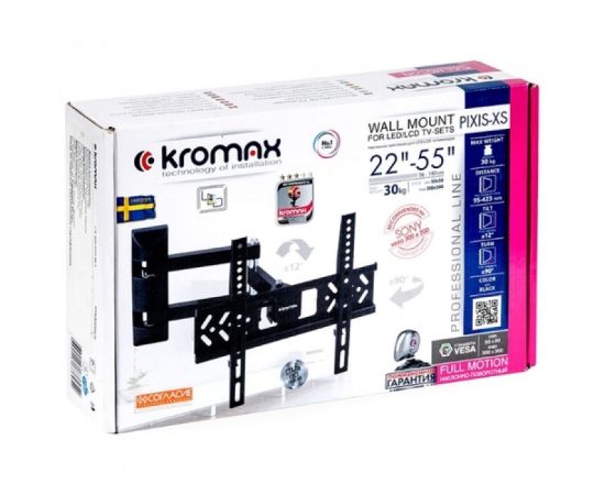 Кронштейн Kromax PIXIS-XS черный 22"-55" макс.30кг поворотно-выдвижной и наклонный