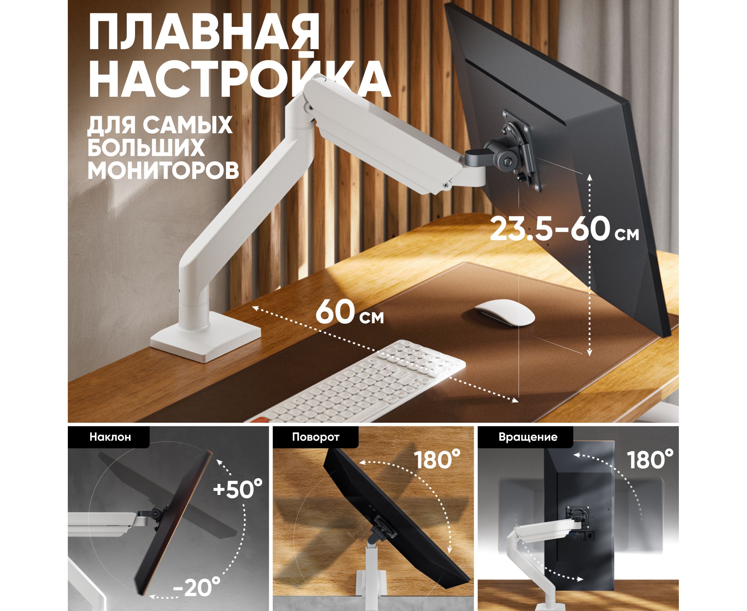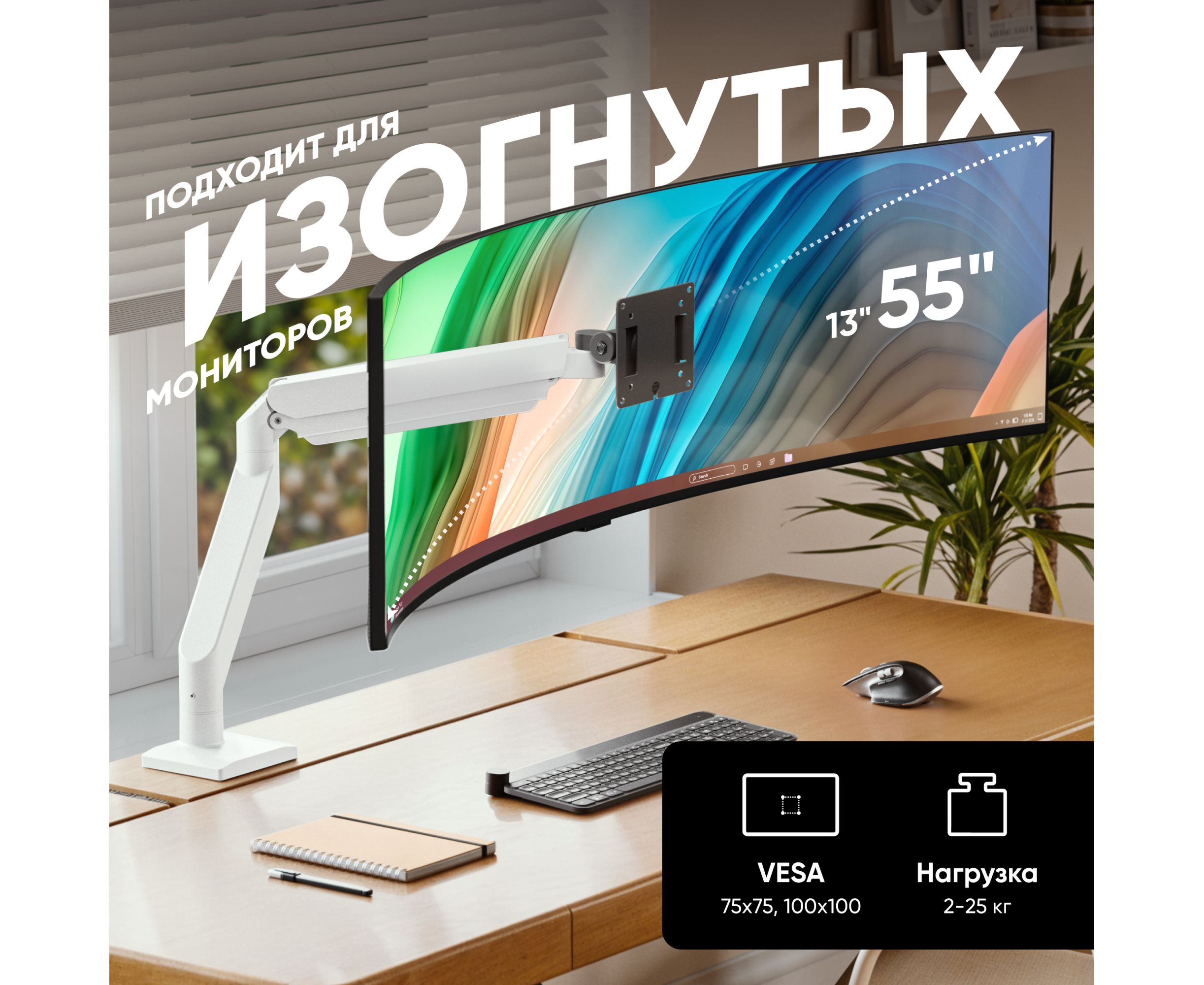 Кронштейн ONKRON G110-BW чёрно-белый (держатель) для монитора 13"-55" дюймов настольный,макс.нагрузка 25кг,VESA: 75x75, 100x100мм