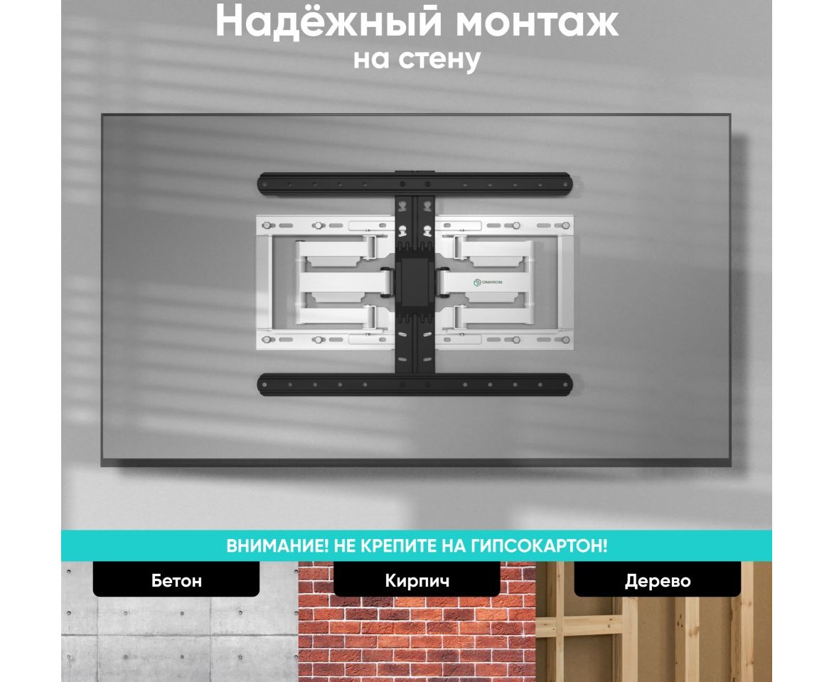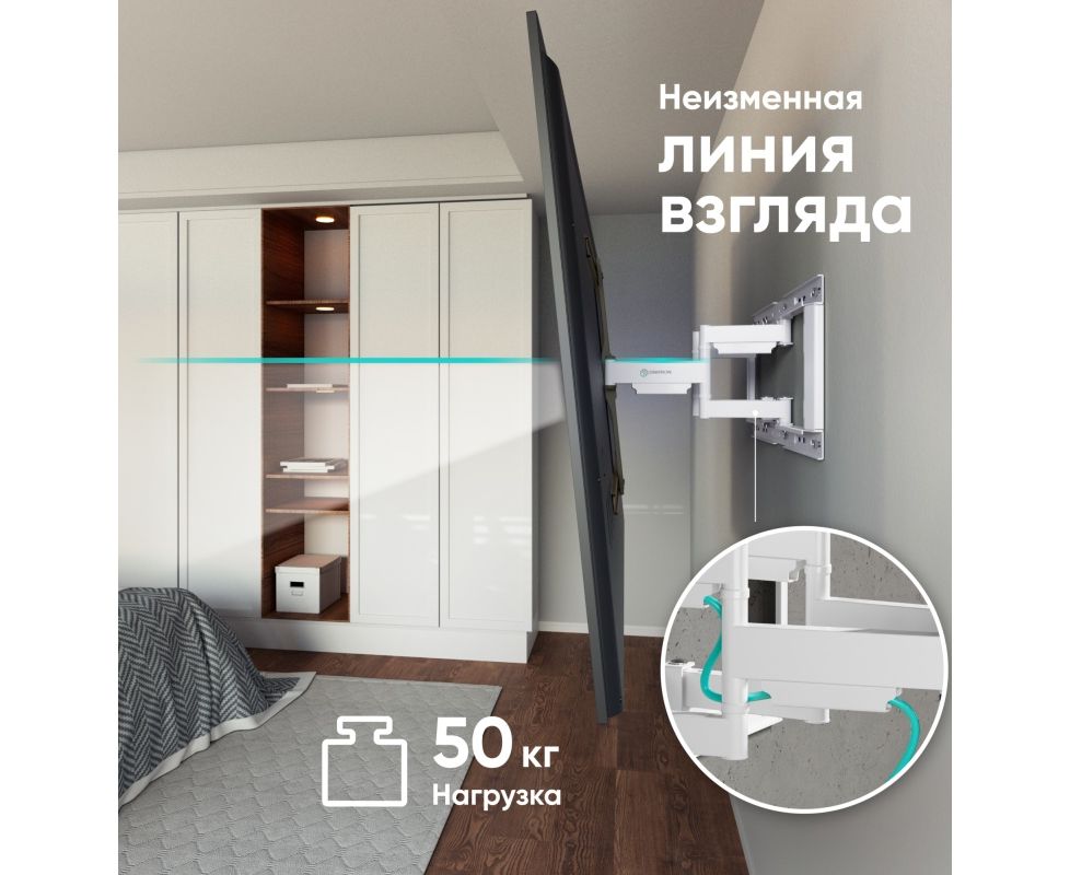 Кронштейн ONKRON SM6-BW чёрно-белый Для экранов с диагональю 32"-90" наклонно-поворотный, макс. нагрузка 50кг