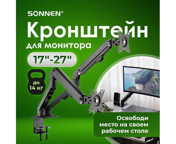 Кронштейн Sonnen Motion 455945 для двух мониторов настольный VESA 75х75, 100х100, 17"-27", до 14кг