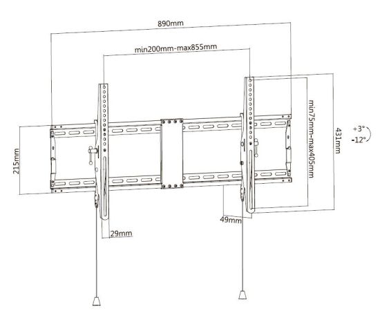 VESA: 200x200, 300х200, 300х300, 400x200, 400х300, 400x400, 600x400, 800x400