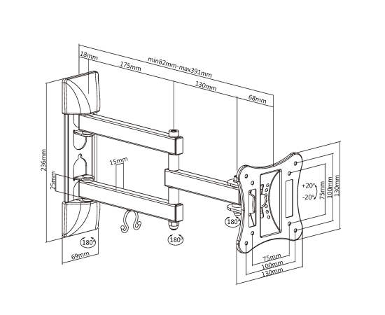 Расстояние от стены: 82~391 мм