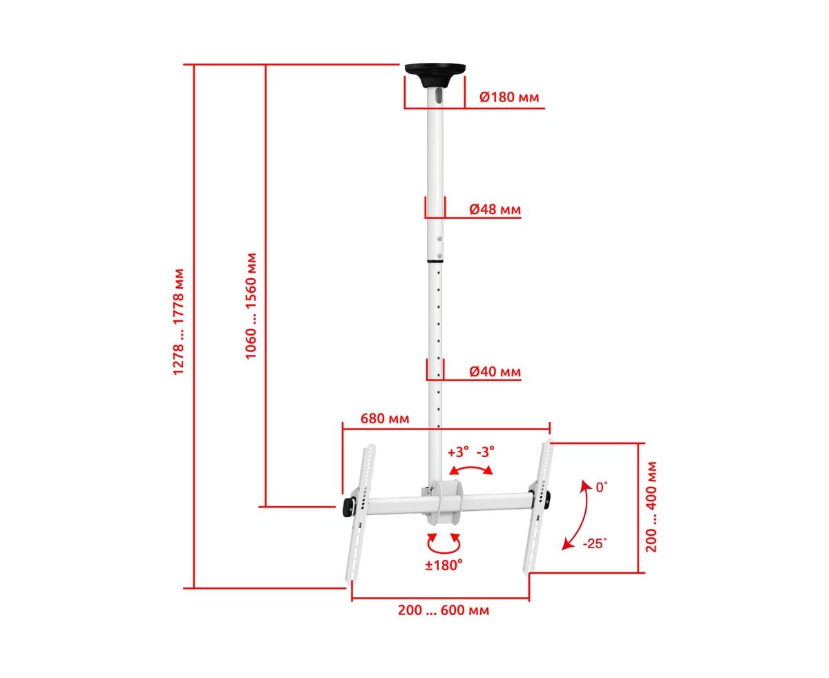 Потолочный наклонно поворотный кронштейн для телевизора или монитора UNITEKI LCD4246W в белом эксклюзивном окрасе. Кронштейн является одним из самых маневренных в своей категории. Он обладает широчайшими возможностями наклона, поворота и передвижением в вертикальной плоскости.