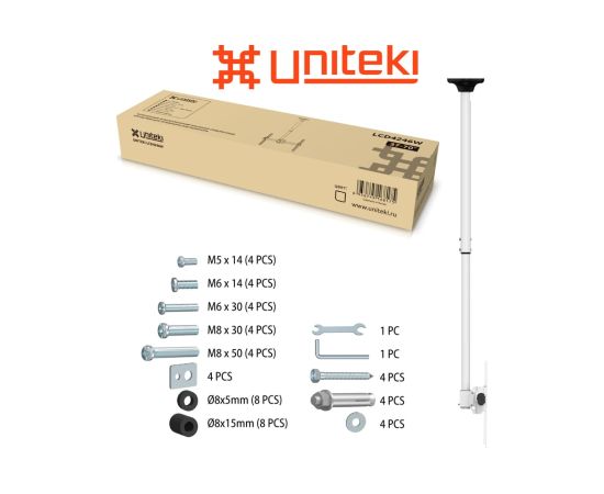 Кронштейн UniTeki LCD4246W для телевизора потолочный, быстросъемный, наклонно поворотный, телескопический, диагональ 37-70 дюймов