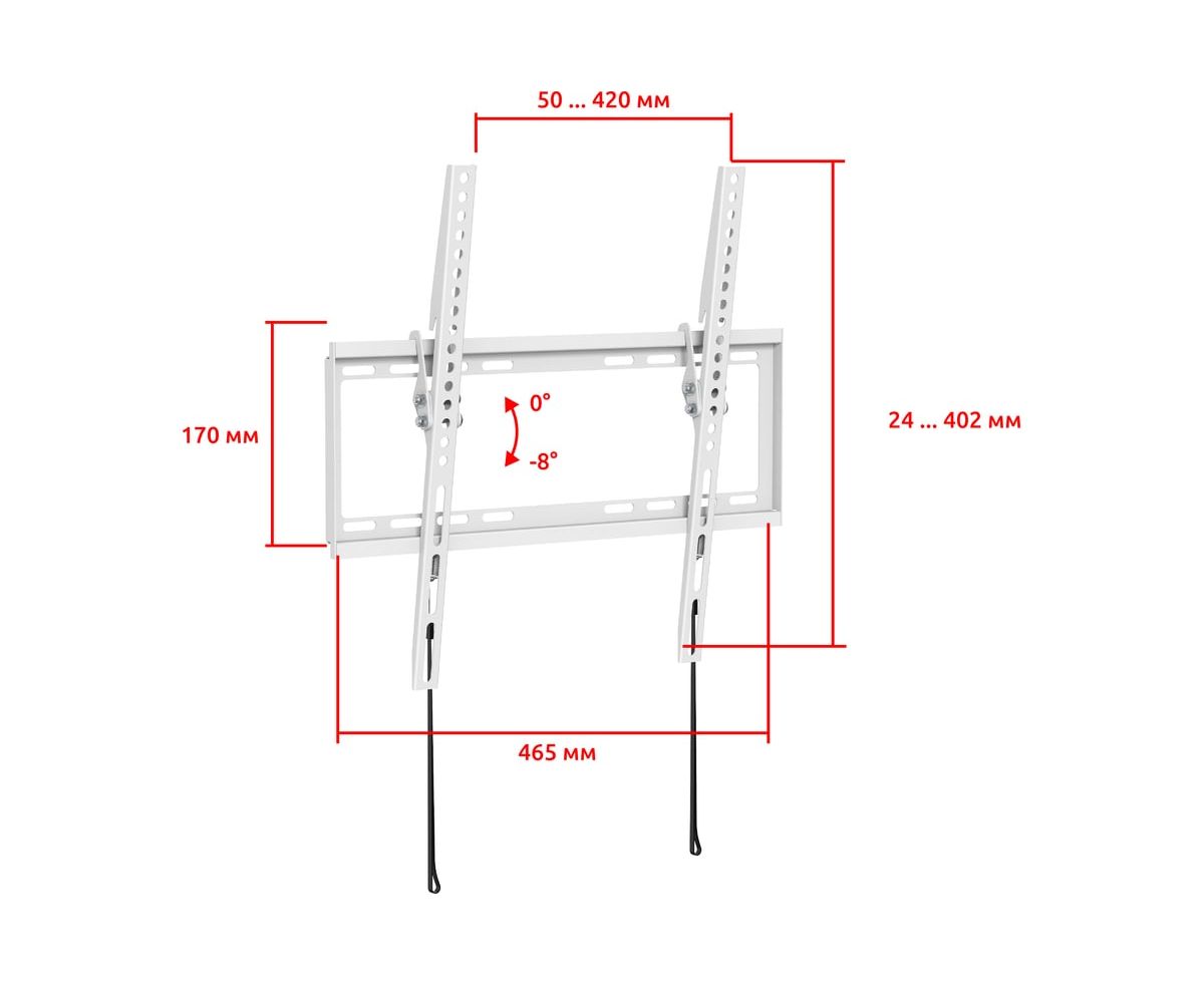 Широкий выбор вариантов монтажных отверстий для установки на стену позволяет надежно зафиксировать кронштейн.