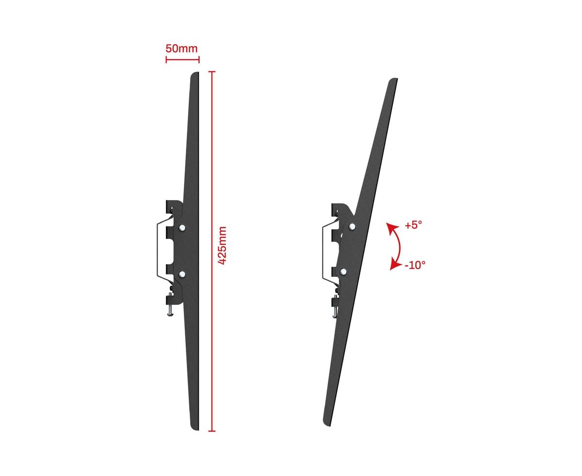 Увеличенная площадка крепления к стене обеспечит еще большую надежность вашего ТВ и подарит чувство безопасности вам и вашим близким. Вы можете занимать любое удобное положение при просмотре ТВ за счет широких возможностей регулировки угла наклона. Эти возможности позволят получать удовольствие от просмотра. Также вы сможете комфортно разместить телевизор и на большой высоте. Конструкция предусматривает крепление телевизора к настенной площадке кронштейна с помощью болтов. Они обеспечивают хорошие возможности фиксации без возможности быстрого демонтажа ТВ.