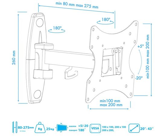 Максимальная диагональ ТВ: 20-43 "