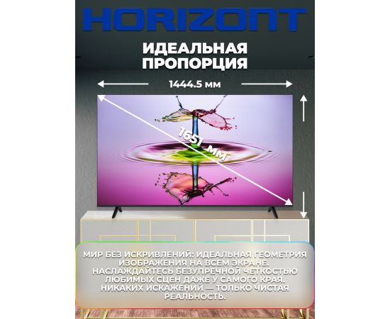 65" Телевизор Horizont 65UHDS25BG черный 3840х2160, 4K UltraHD, 60 Гц, Wi-Fi, Smart TV, Яндекс ТВ