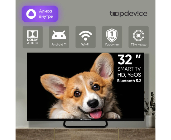 32" Телевизор TopDevice TDTV32CS03H_BK черный 1366x768, HD, 60 Гц, Wi-Fi, Smart TV, Яндекс ТВ