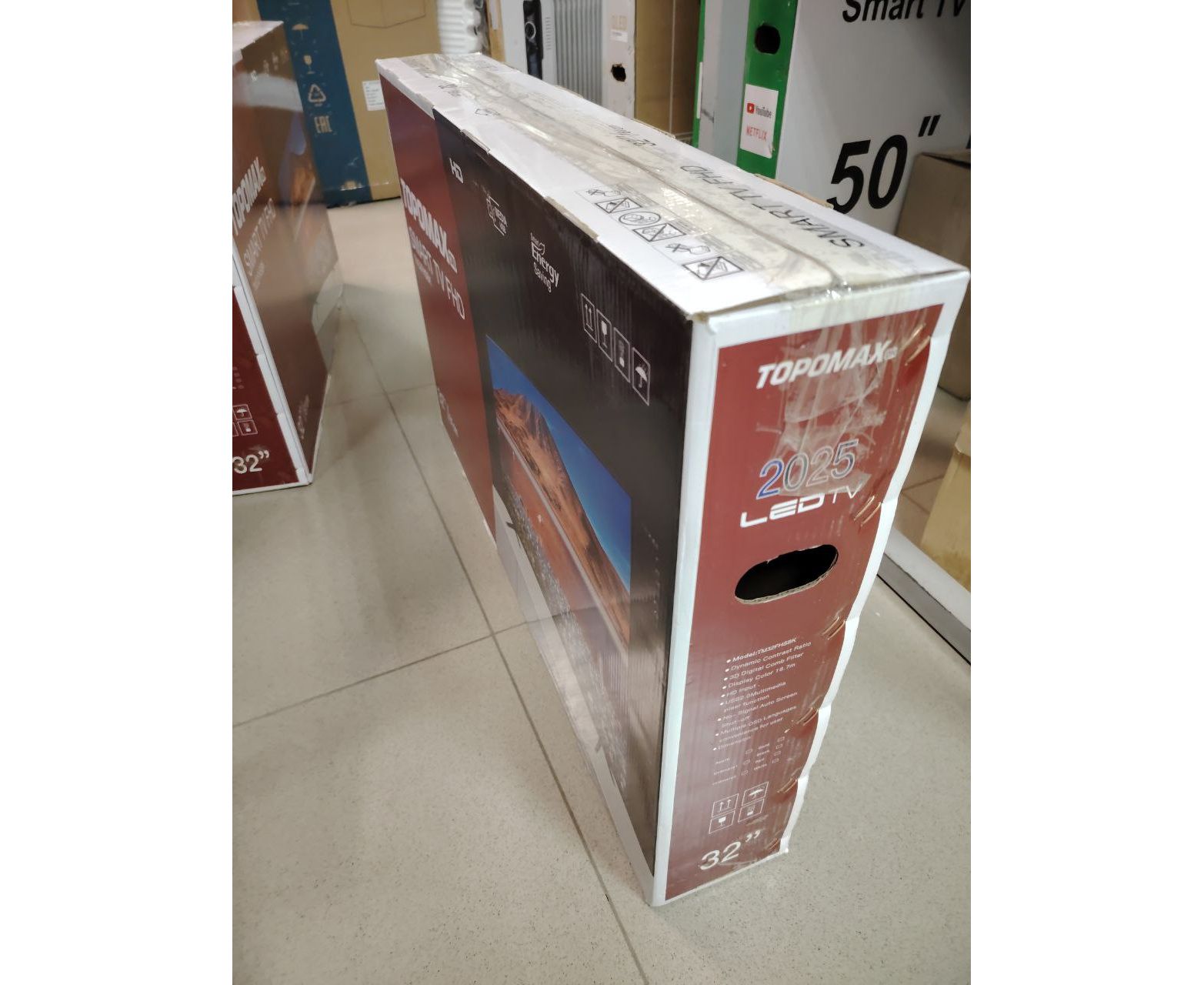 УЦ 32" Телевизор TOPOMAX (TM32FHSBK) черный 1920x1080, Full HD, 60 Гц, Wi-Fi, Smart TV, Android TV 12.0 (плохая упаковка, полоса на экране)